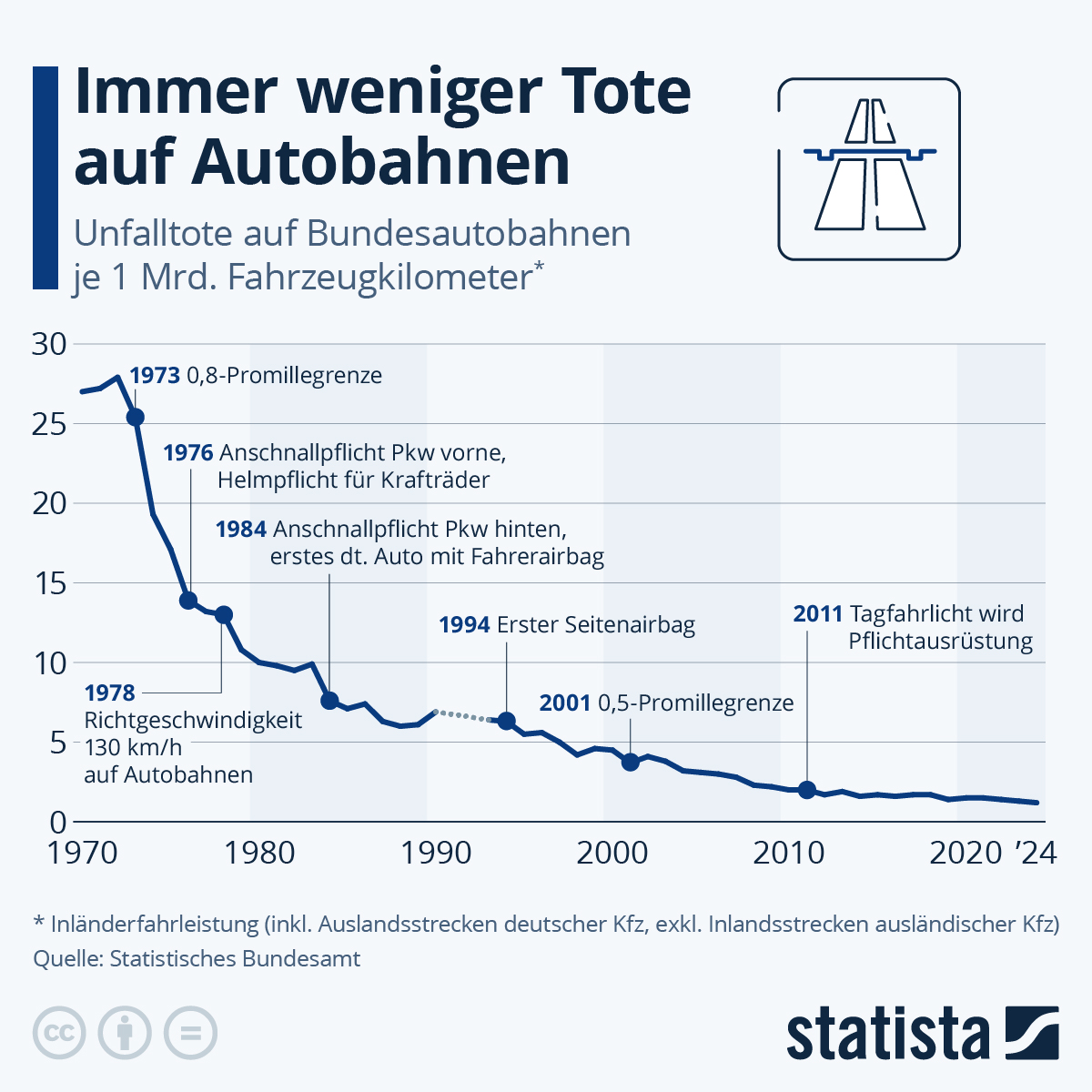 Infografik: Immer weniger Tote auf Autobahnen | Statista