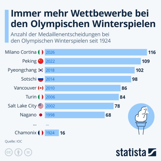 Immer mehr Wettbewerbe bei den olympischen Winterspielen (Statista + Kommentar)