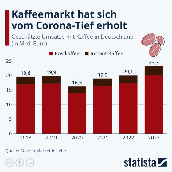 Neue Umsatzrekorde beim Kaffee +++ Der Tag startet am besten mit Kaffee +++ Der teure Cappuccino +++ 450 Tassen Kaffee im Jahr +++ Deutsche geben mehr aus für Kaffee als Italiener … (Statista + viele Zusatzinfos) | Briefing 469 Update 4 | Wirtschaft, Gesellschaft