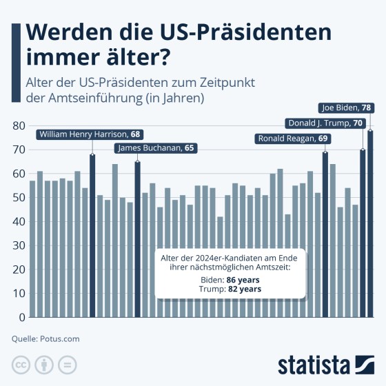 Update: Werden US-Präsidenten bei Amtseinführung immer älter? (Grafik, viele Zusatzinfos) +++ Biden und Trump – zu alt fürs Amt? (Grafi, Infos, Kommentar) | Briefing 584 Update | Geopolitik, USA, Präsidentschaftswahlen 2024