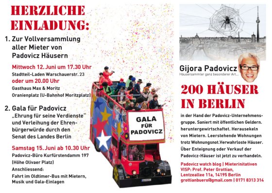 12.06.2019, 17:30 / 20:00 zur Vollversammlung aller Padovicz-Mieter_innen! Zwei Standorte, zwei Zeiten, ein Vermieter, ein Ziel + Gala am Samstag, den 15.06.2019 / @padowatchblog #Padowatch / #Verdrängung #Netzwerk #Mietenwahnsinn