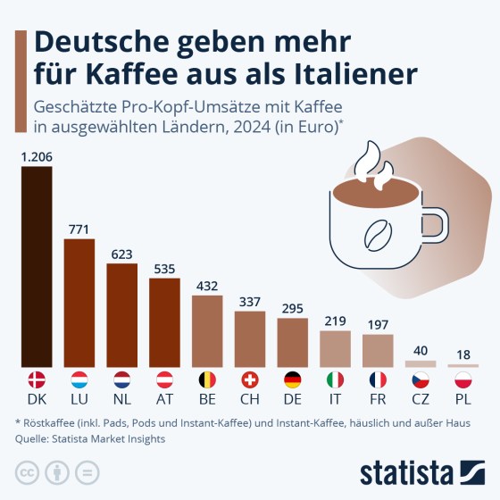 Deutsche geben mehr aus für Kaffee als Italiener … (Statista + viele Zusatzinfos) | Briefing 469 | Wirtschaft, Gesellschaft