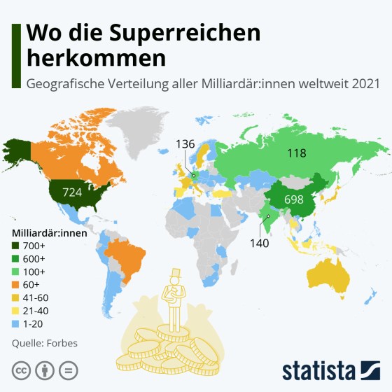 Wo die 2.755 Miliardär:innen herkommen +++ Wachstum 2021 um mehr als 30 Prozent | Frontpage | Wirtschaft, Gesellschaft | Die Superreichen, Oben und Unten